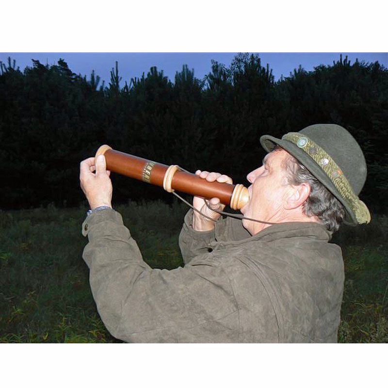 Dieser Locker hat sich bereits vielfach in der jagdlichen Praxis bewährt: Das imitierte Röhren eines Rothirsches lockt den brunftigen Platzhirsch oder Nebenbuhler zum Ansitz.