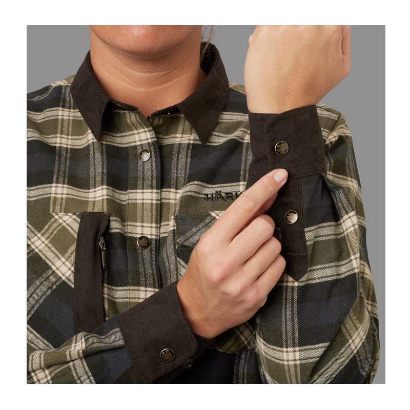 Die Härkila Aivak Bluse ist eine ausgezeichnete Wahl für Jagd- und Outdoor-Aktivitäten bei kühler Witterung. Gefertigt ist sie aus behaglich wärmendem Baumwollflanell mit hautzarter Oberfläche – Stretchfasern machen das Gewebe angenehm dehnfähig und erhöhen so den Tragekomfort.