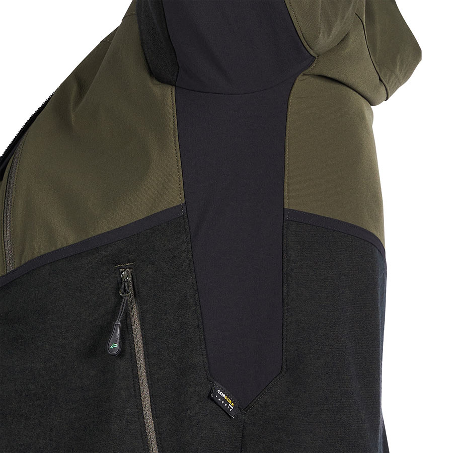 Die Jacken-Außenseite besteht aus einem strapazierfähigen Mix von Polyamid und Wolle – langlebig, wetterfest und ideal für den Einsatz im Gelände.