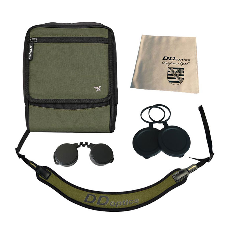 Lieferung inklusive Trageriemen von Niggeloh, Fernglastasche, Putztuch, Objektiv- und Okularschutzkappen