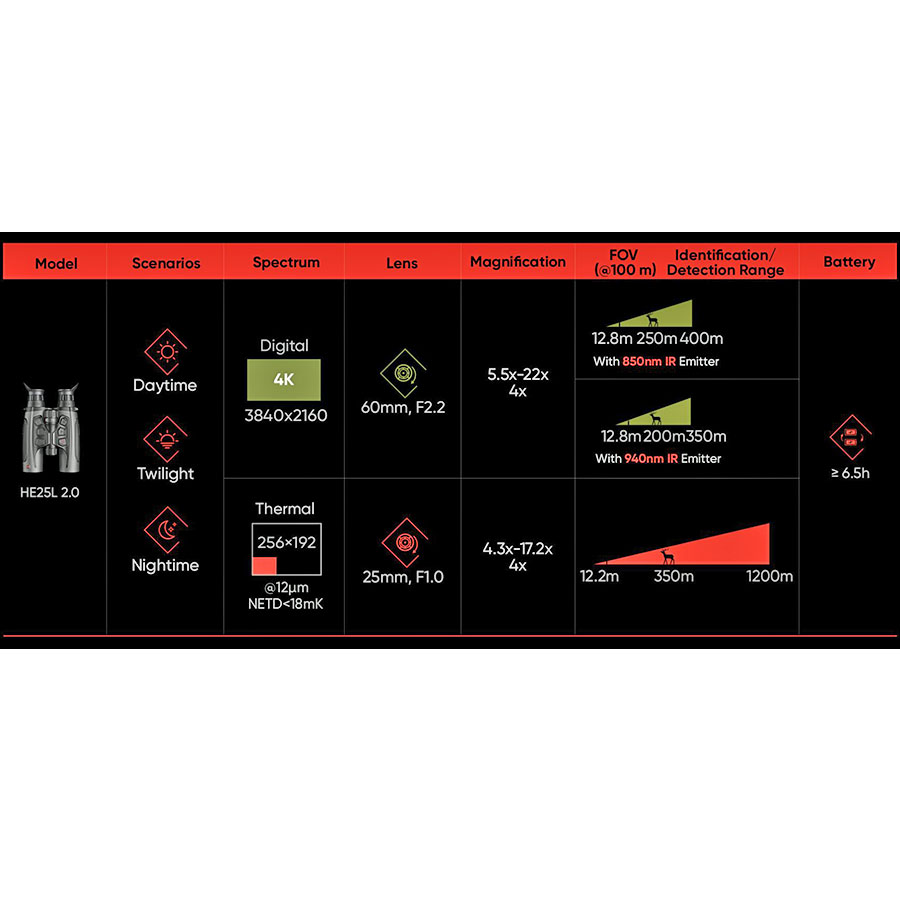 Hikmicro Habrok 4K HE25L 2.0 5.5-22x60 Wärmebildfernglas mit Laser-Entfernungsmesser